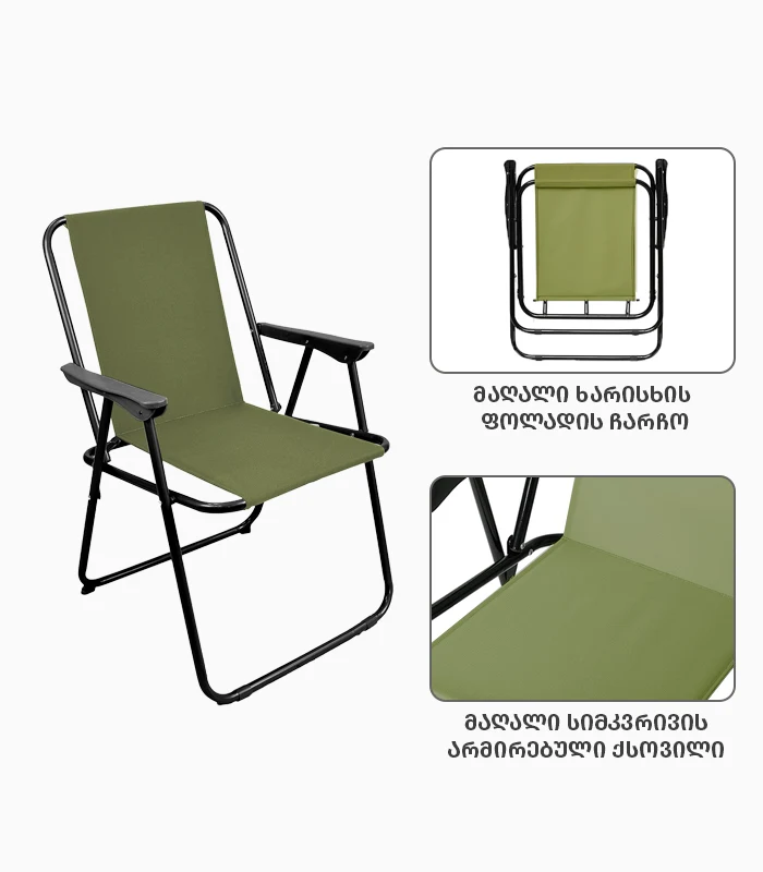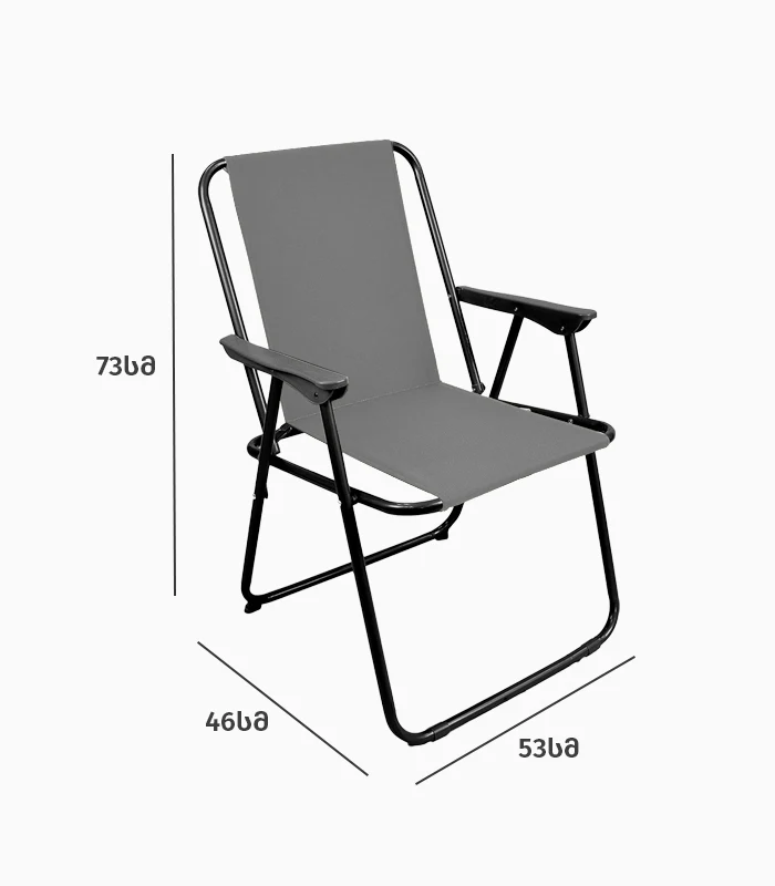 დასაკეცი მსუბუქი სკამი პოლიესტერის ზედაპირით და გამძლე მეტალის კარკასით. იდეალურია პიკნიკზე, ბაღში, პლაჟზე ან თუნდაც აივანზე კომფორტული დასვენებისთვის.
