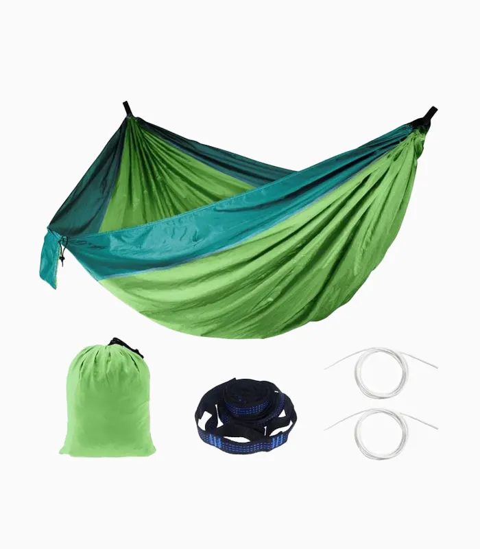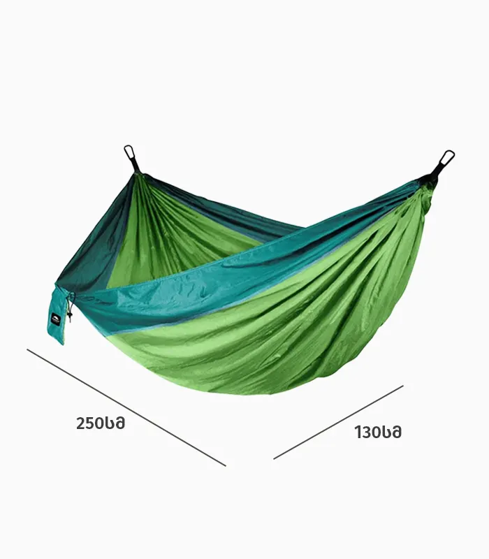 პორტატული ორმაგი ჰამაკი Nebu.ge-ზე იდეალურია კემპინგისთვის, ლაშქრობისთვის და ეზოში დასასვენებლად. იგი დამზადებულია მსუბუქი, გამძლე და სწრაფად შრობადი ნეილონის ქსოვილით.
