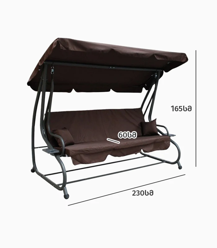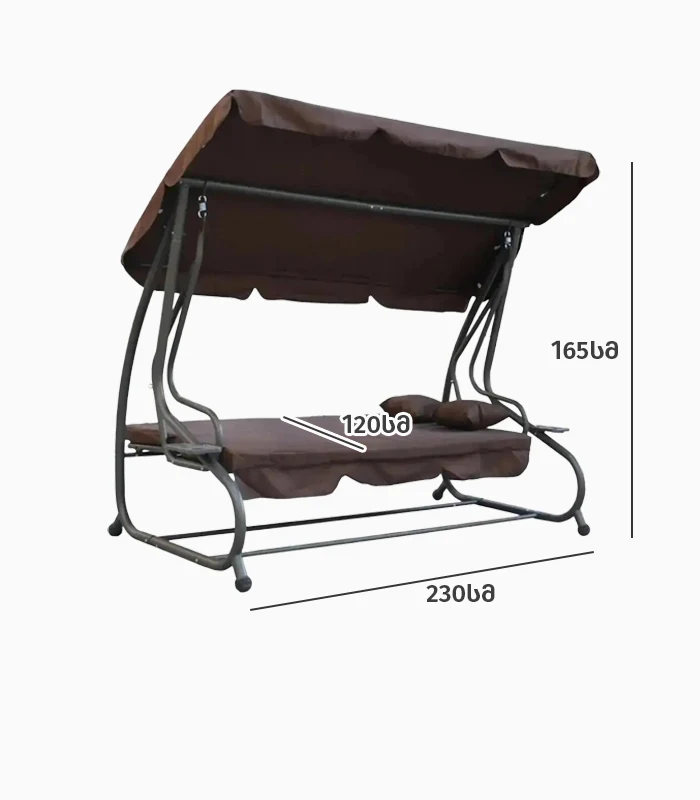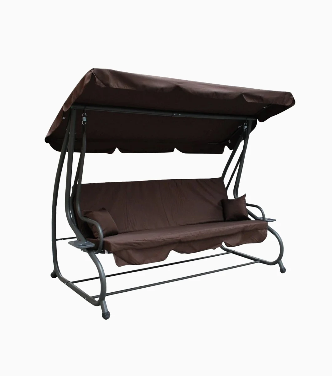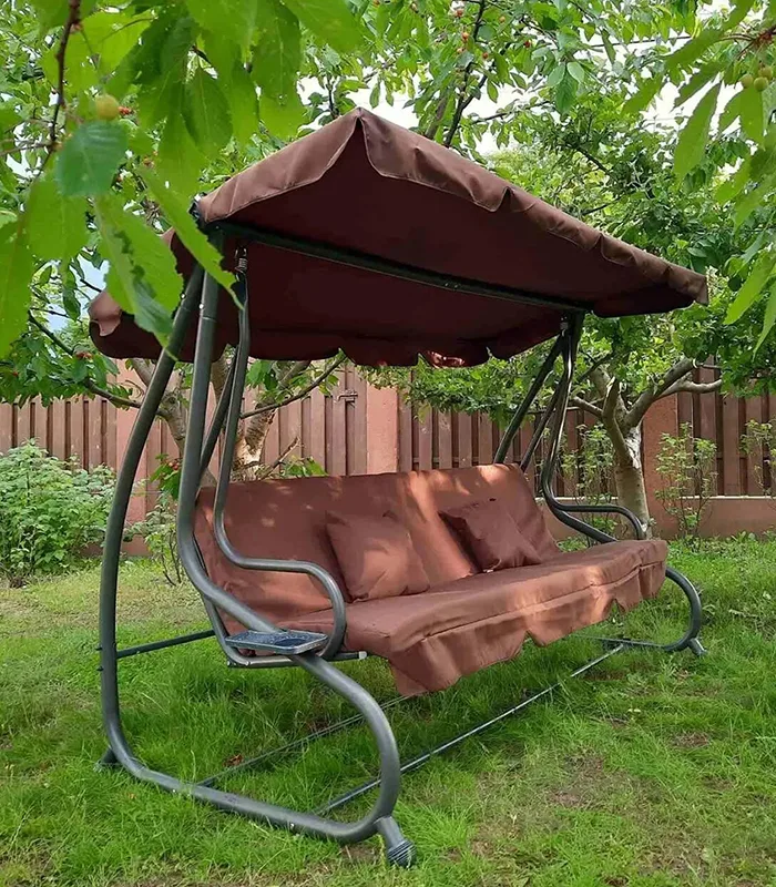 პრემიუმ გასაშლელი 3 ადგილიანი ბაღის საქანელა – ყავისფერი, 250 კგ გამძლეობით